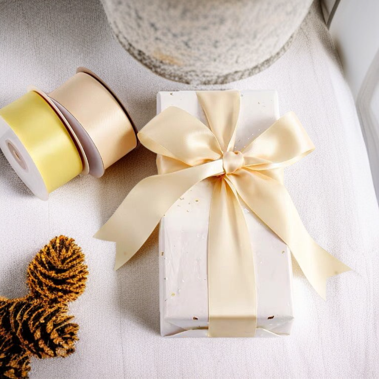 ● 고급스러운 샴페인 컬러와 4cm 넓이로 어떤 선물에도 우아함을 더해주는 더블사이드 폴리에스터 리본입니다. ● 양면 사용이 가능한 튼튼한 폴리에스터 소재로 포장, 장식, 공예 등 다양한 용도에 완벽하게 활용할 수 있습니다. ● 선명하고 세련된 색감으로 선물 포장뿐만 아니라 파티, 웨딩, 이벤트 데코레이션에도 멋진 포인트가 되어줍니다.